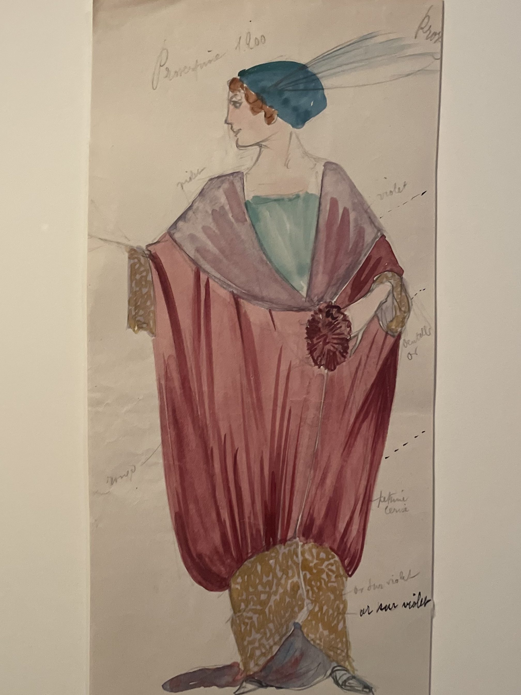 He was also drawn to other forms of dance, particularly the free movements of Isadora Duncan and Nyota Inyoka’s incorporation of elements from Indian folklore. Natalia Goncharova, associated with the Ballets Russes, designed a costume for the dancer Caryathis, who in 1921 performed at Poiret’s theater L’Oasis.