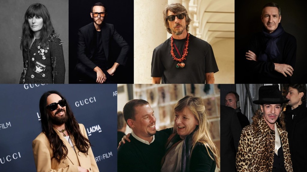 v.l.n.r. Alessandro Michele (links unten), Sarah Burton mit Alexander McQueen & John Galliano