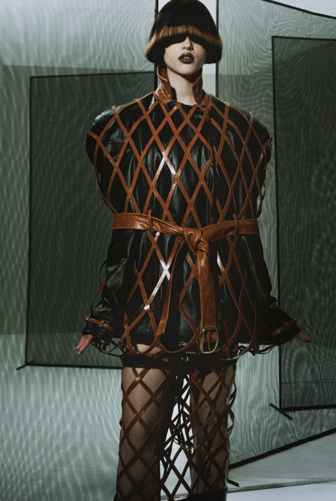 Paula Van Dijck widmet sich in ihrer Masterkollektion dem Thema Oberflächlichkeit als Schutzmechanismus. Ausgehend von einer persönlichen Erfahrung zeigt sie, wie äußere Schönheit, künstliche Erscheinung und Inszenierung emotionale Verletzlichkeit verbergen können. Materialien wie Leder, Fransen und Spikes stehen für Eleganz und Verteidigung zugleich. Perücken betonen das Spiel mit Identität und Wandel. Die Kollektion bewegt sich zwischen Stärke und Zerbrechlichkeit, zwischen Kontrolle und Offenbarung.