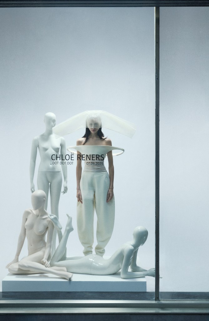 Chloë Reners untersucht in ihrer Kollektion die Darstellung von Frauen im Surrealismus – oft verzerrt, fragmentiert oder idealisiert. Inspiriert von George Underwoods Bildern und ihrer surrealen Ästhetik übertrug sie das Motiv der Verschiebung auf ein Brillendesign in Zusammenarbeit mit KOMONO. Das Ergebnis: ein Sonnenbrillenmodell, das horizontal geteilt und versetzt wurde, um die Wahrnehmung herauszufordern. Ihre Arbeit bewegt sich zwischen Realität und Vorstellung – und reflektiert gesellschaftliche Schönheitsideale auf subtile Weise.