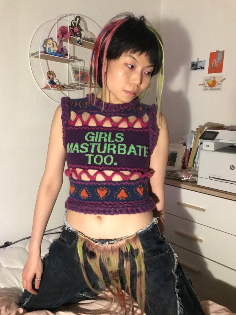 Heute sehe ich Stricken als ein kreatives Werkzeug, mit dem ich meine eigene Welt erschaffen kann. Ich habe keine Lust, einfach nur einen grauen Pullover zu stricken – das kann ich, klar, aber das reizt mich nicht. Ich liebe es, Strick als Medium für meine Ideen zu nutzen. Es ist Ausdruck meiner Kreativität, und ich glaube, das ist genau das, was mich so sehr daran bindet und antreibt.“