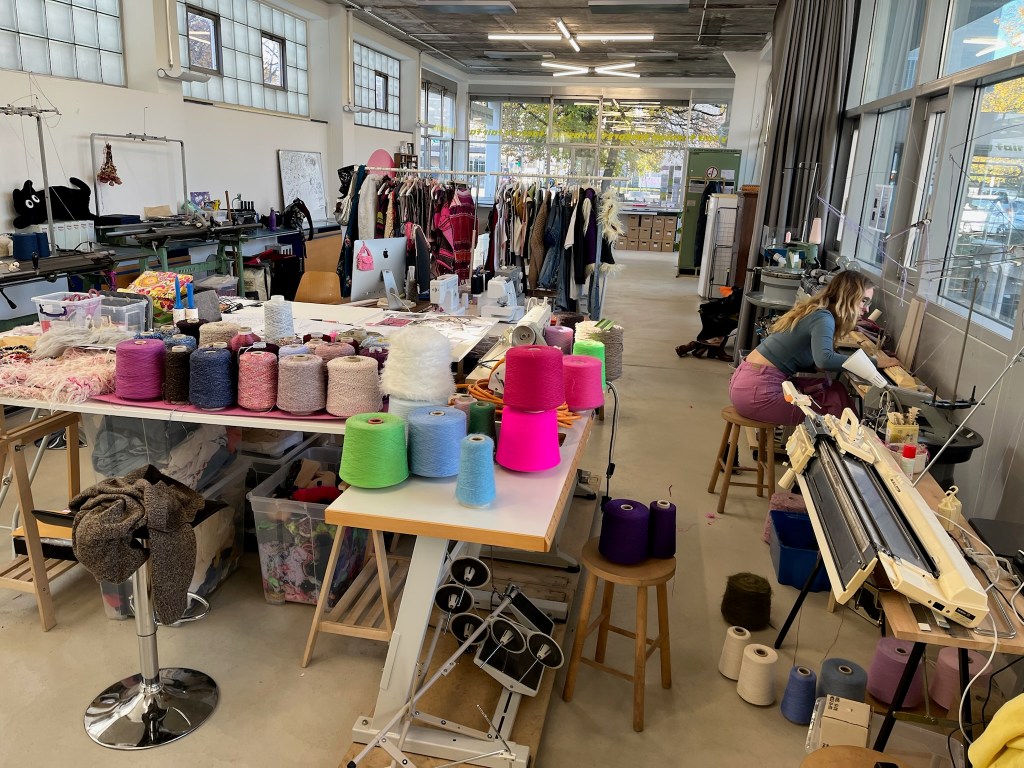 Tati: „Ich habe Modedesign an der HGK (Hochschule für Gestaltung und Kunst) in Basel studiert und während meines Studiums ein Austauschsemester an der Royal Academy of Arts in Den Haag gemacht. Dort habe ich zum ersten Mal Strick an der Maschine kennengelernt – mir war gar nicht bewusst, dass man überhaupt maschinell strickt. Gleichzeitig habe ich dort auch textile Kunst und Textildesign für mich entdeckt.