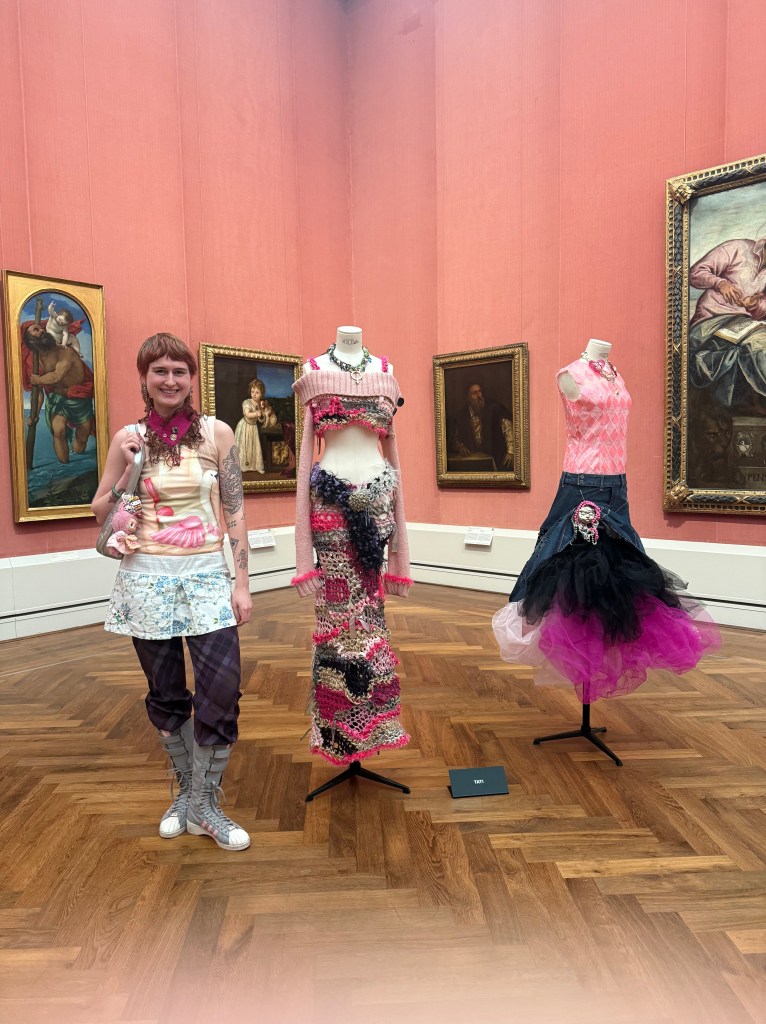 Tati: „Also, ich habe zuerst einen Vorkurs an der Schule für Gestaltung in Basel gemacht. Damals dachte ich noch, ich würde Grafikdesign oder Kunst auf Lehramt studieren, weil ich einfach keine Ahnung hatte, was es alles gibt. Kreativ sein bedeutete für mich damals eben Grafik oder Kunst. Beim Vorkurs habe ich verschiedene Universitäten angeschaut und war auf einem Open Day. Zufällig bin ich am Modedesign-Department vorbeigelaufen und die Textilproben und die Kleidung haben mich sofort fasziniert. Spontan habe ich mich dort beworben. Ich glaube, ich hatte Glück, überhaupt aufgenommen zu werden, weil ich damals echt ein Noob war. Mein Portfolio war quasi noch gekauft. Ich war sehr jung und unerfahren, aber ich wollte mich ausprobieren. Eigentlich wollte ich ursprünglich freie Kunst machen, aber das kam mir damals zu unsicher vor. Modedesign fühlte sich sicherer an, weil ich dachte, danach könnte ich vielleicht für eine Firma arbeiten. Am Ende habe ich aber gelernt: Sicherheit gibt es in der Modebranche kaum.“