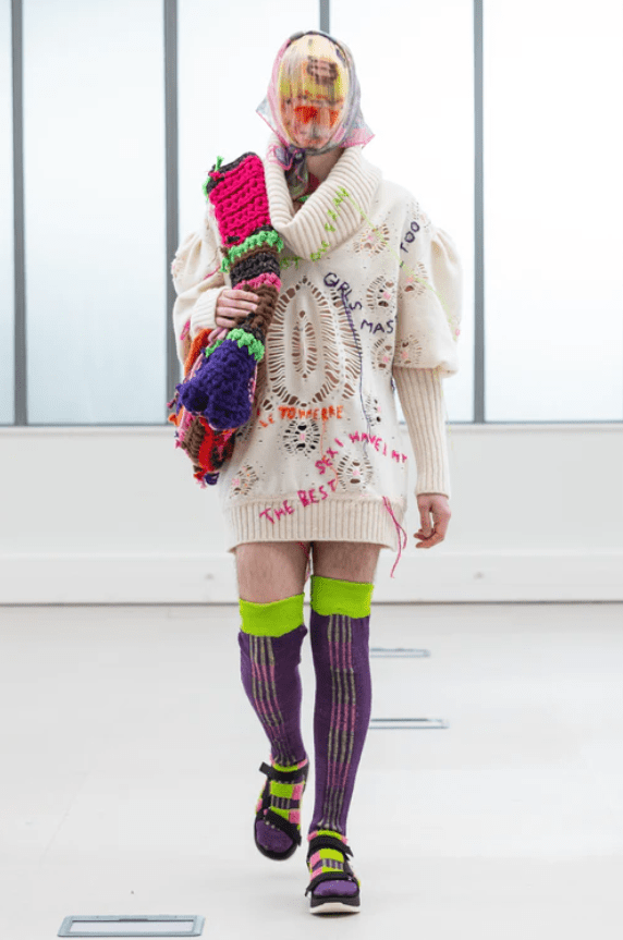Today, I see knitting as a creative tool to build my own world. I have no interest in just knitting a gray sweater – sure, I could do that, but it doesn’t excite me. I love using knitwear as a medium for my ideas. It’s an expression of my creativity, and I think that’s exactly what keeps me so connected to it and drives me.“