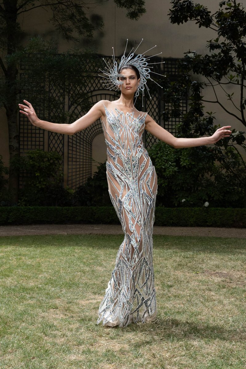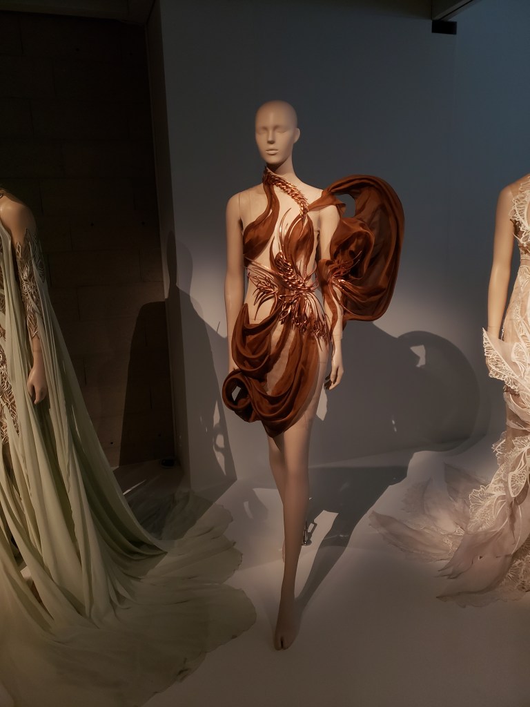 A selection of over 100 haute couture looks from all the collections is juxtaposed with contemporary works of art by artists such as Philip Beesley, the Collectif Mé, Wim Delvoye, Kate MccGwire, Damien Jalet, Kohei Nawa, Casey Curran, Rogan Brown, Jacques Rougerie and also by Neri Oxman, Ren Ri, Ferruccio Laviani and Tomáš Libertíny. In addition, objects from the natural sciences, such as skeletons or fossils, are exhibited in some rooms.