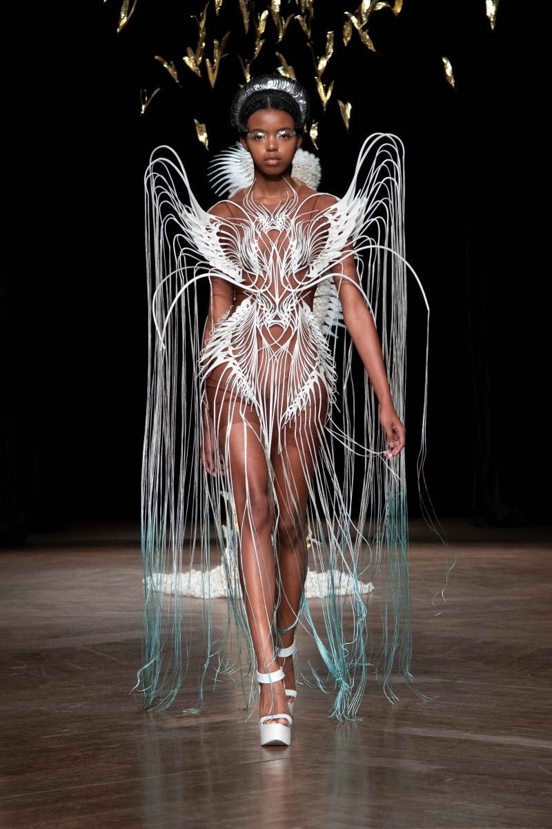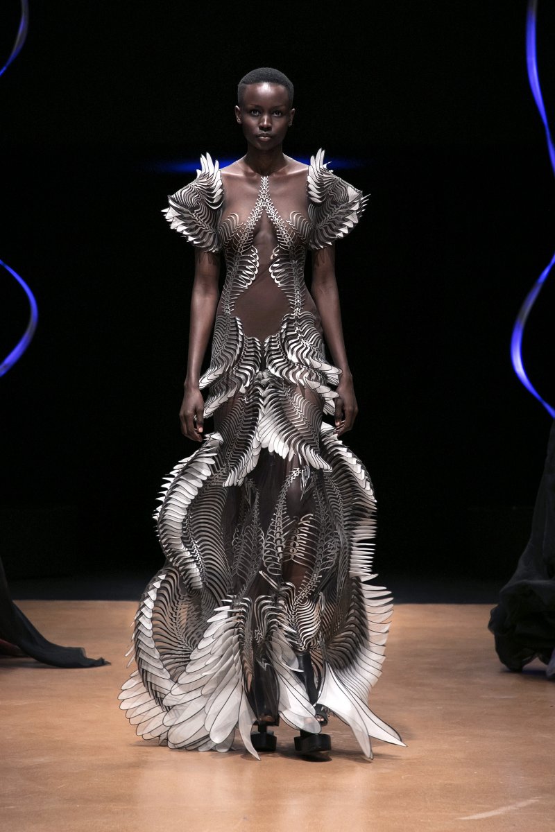 As a pioneer in the application of new technologies in her field, Iris van Herpen transcends conventional clothing norms and relies on both traditional couture know-how and innovative and unconventional techniques.