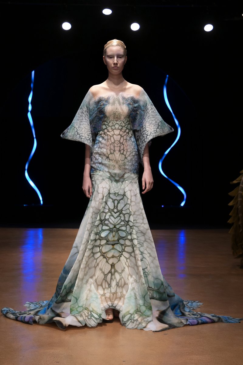 Als Pionierin in der Anwendung neuer Technologien in ihrem Fachgebiet überschreitet Iris van Herpen konventionelle Bekleidungsnormen und setzt dabei sowohl auf traditionelles Couture Know-How, als auch auf innovative und unkonventionelle Techniken.