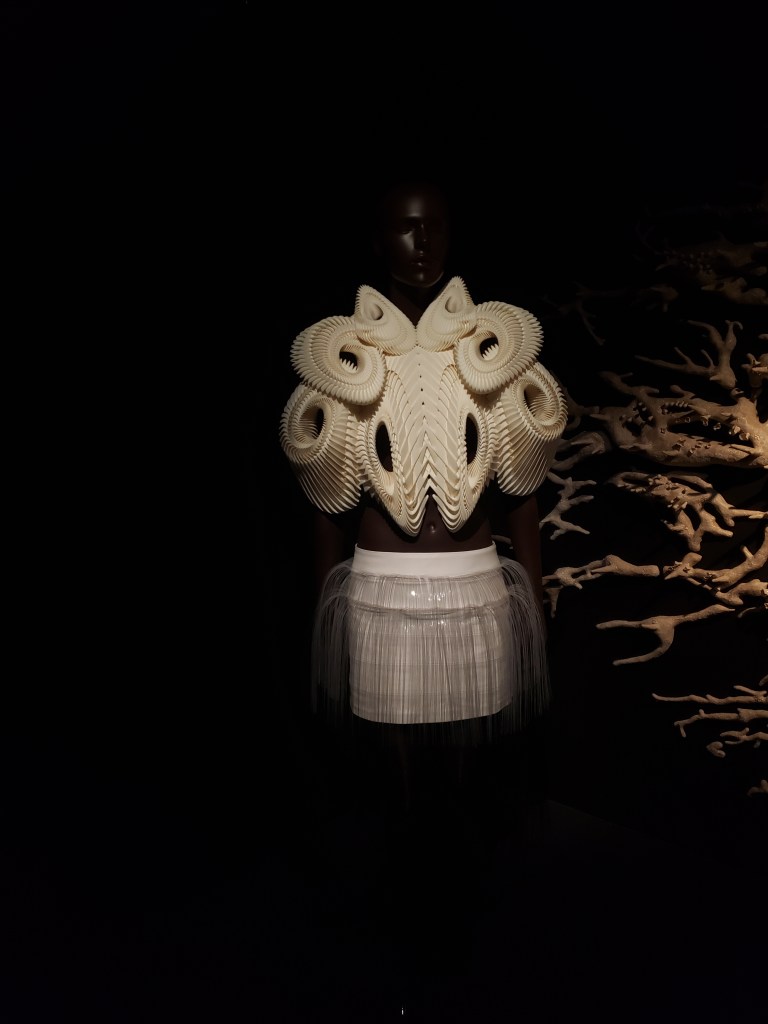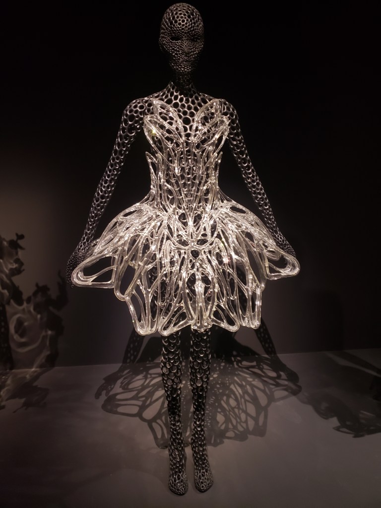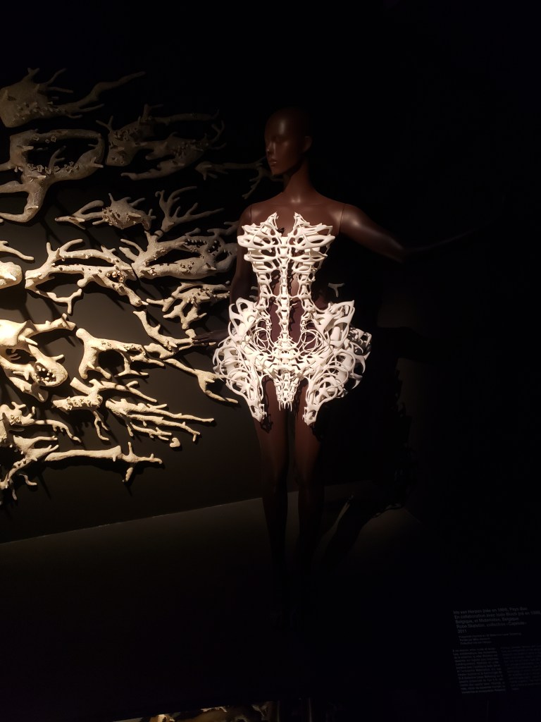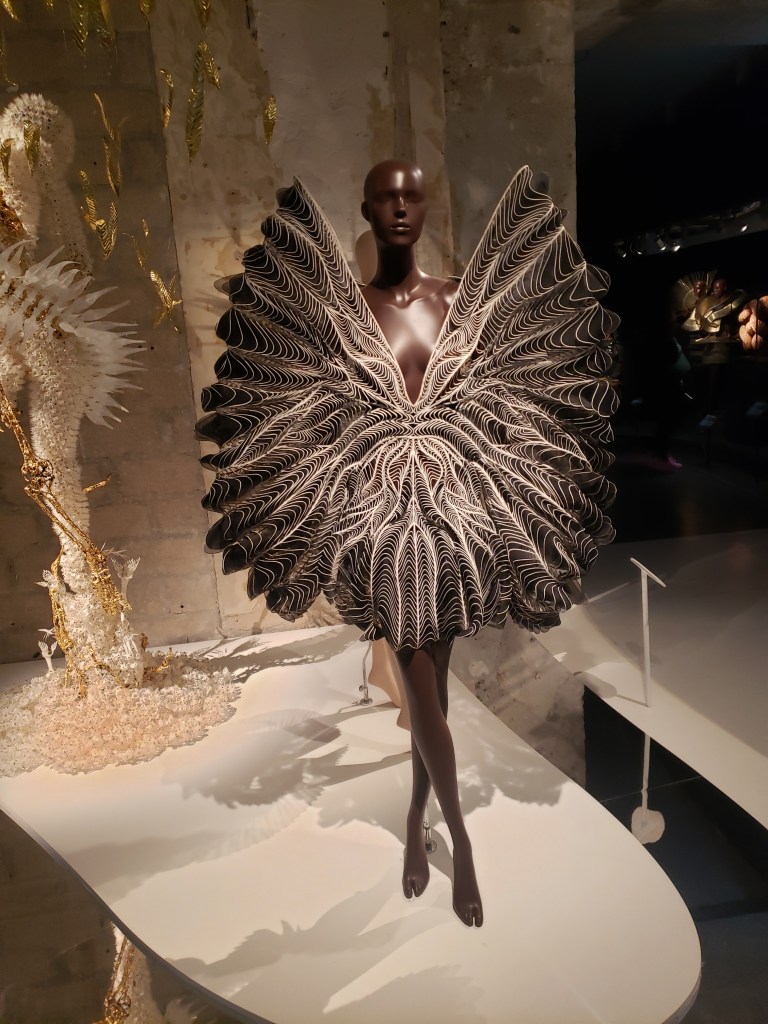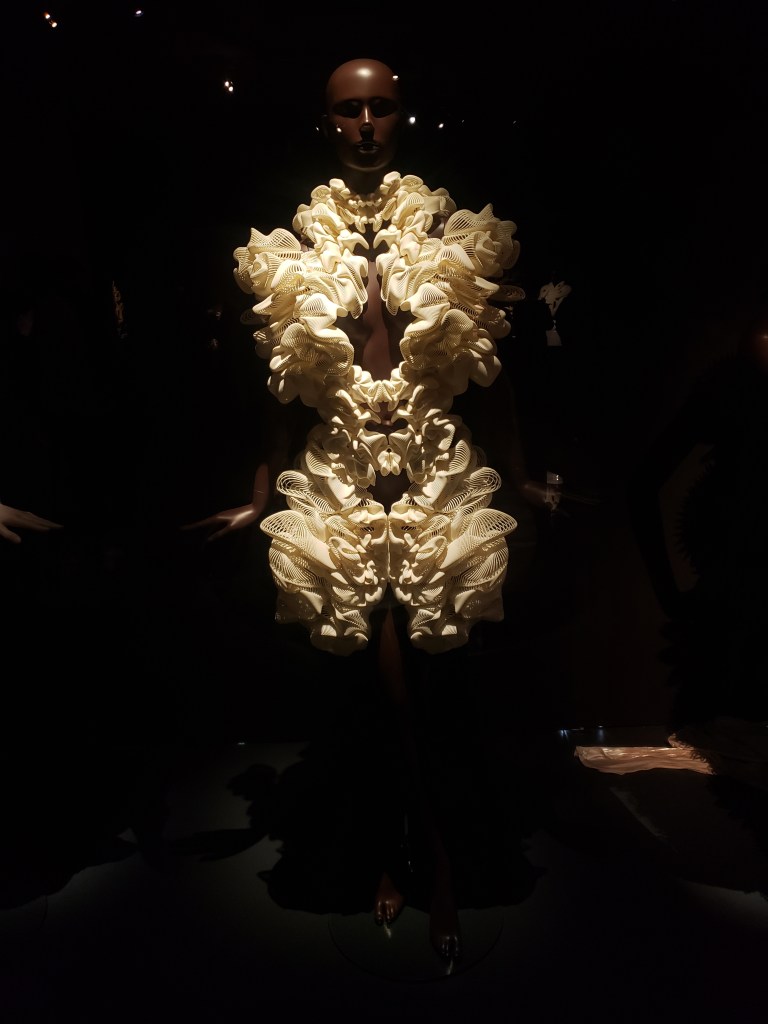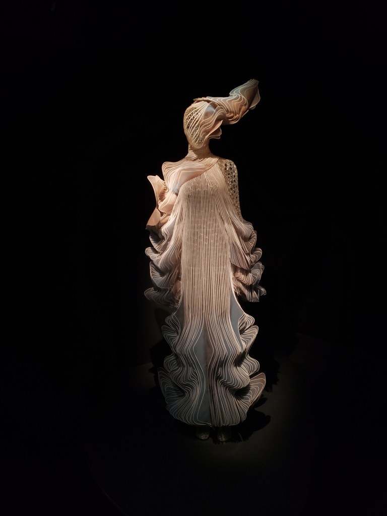 The exhibition was divided into eleven themes, which are presented below. However, this is not intended to be exhaustive and only contains the highlights of each theme. The focus here is on Iris van Herpen’s fashion, but the complementary art was also often a highlight, and is therefore also part of the following highlights. The artist, the collection, and the corresponding year are mentioned below.