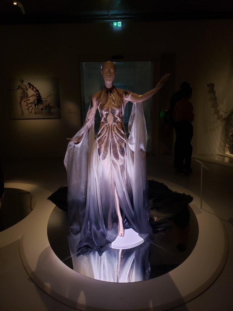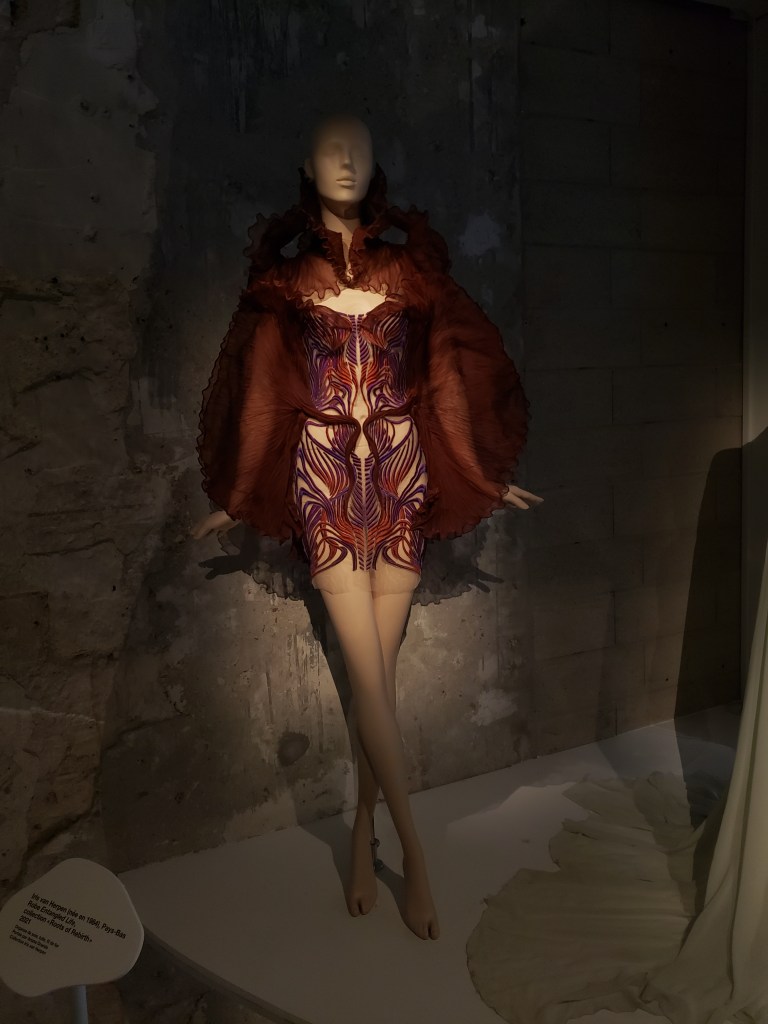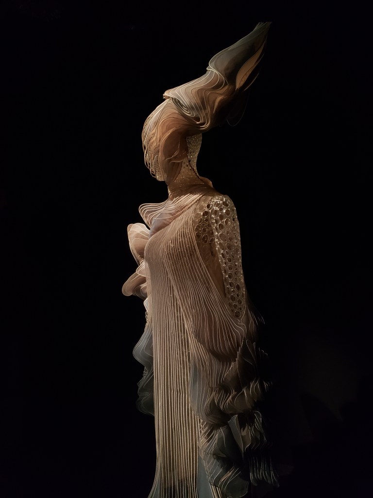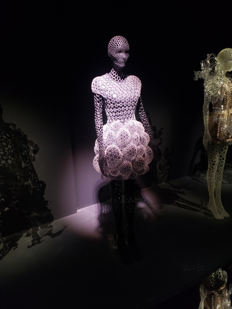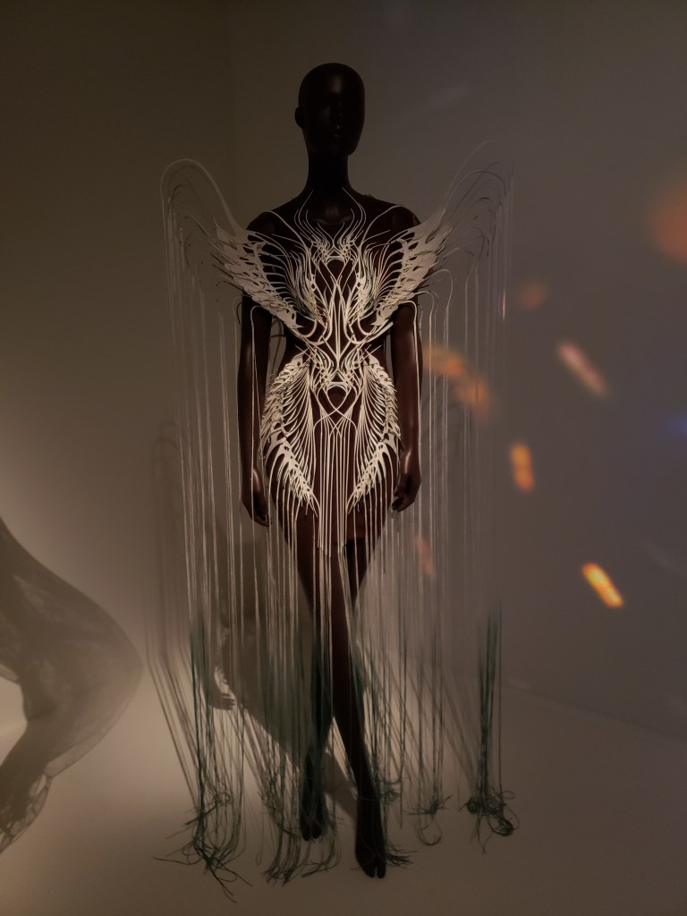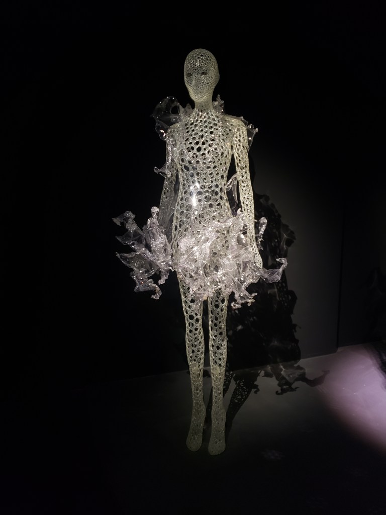 The exhibition was divided into eleven themes, which are presented below. However, this is not intended to be exhaustive and only contains the highlights of each theme. The focus here is on Iris van Herpen’s fashion, but the complementary art was also often a highlight, and is therefore also part of the following highlights. The artist, the collection, and the corresponding year are mentioned below.