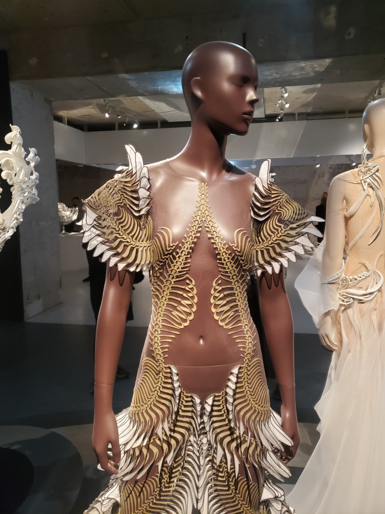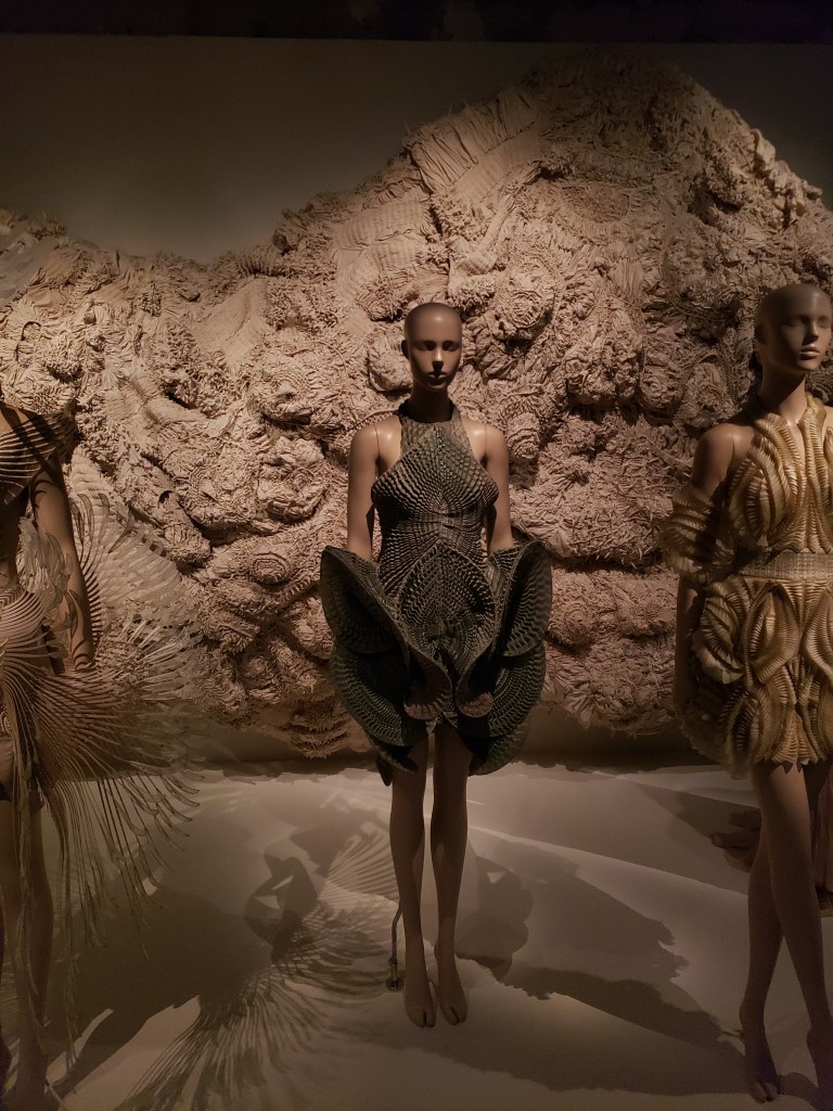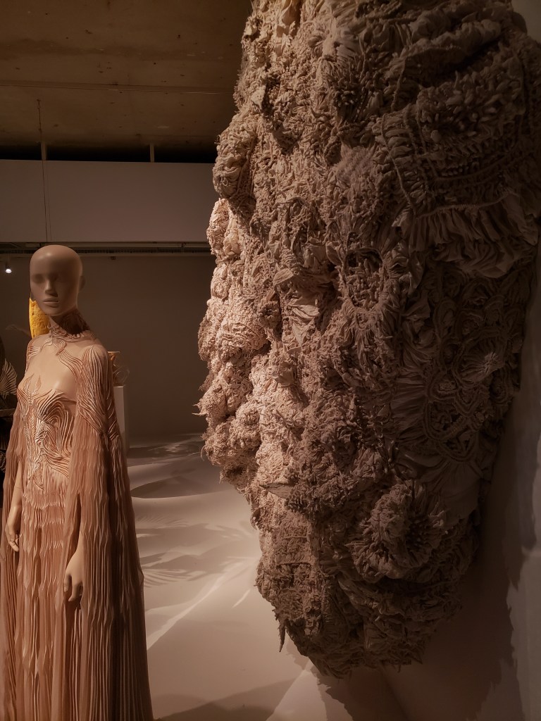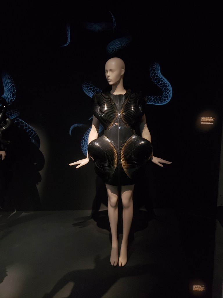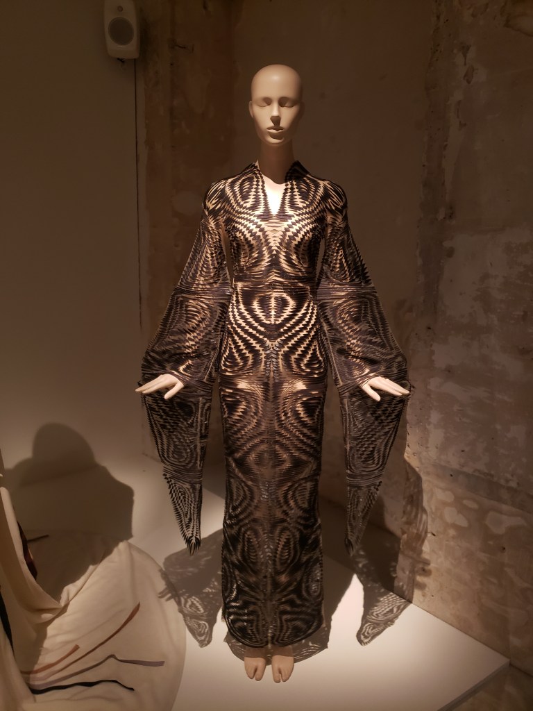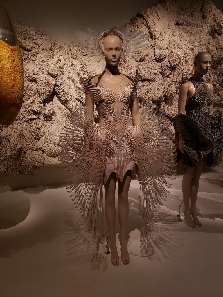 The exhibition was divided into eleven themes, which are presented below. However, this is not intended to be exhaustive and only contains the highlights of each theme. The focus here is on Iris van Herpen’s fashion, but the complementary art was also often a highlight, and is therefore also part of the following highlights. The artist, the collection, and the corresponding year are mentioned below.