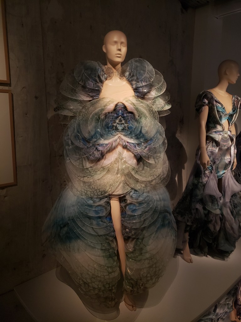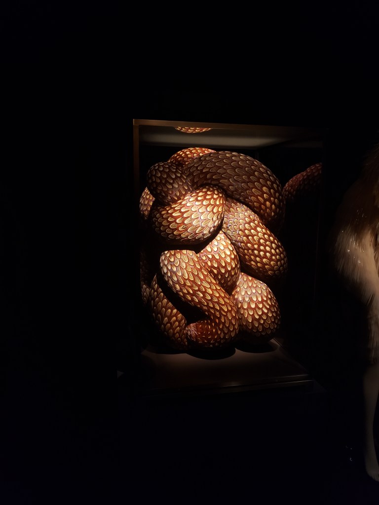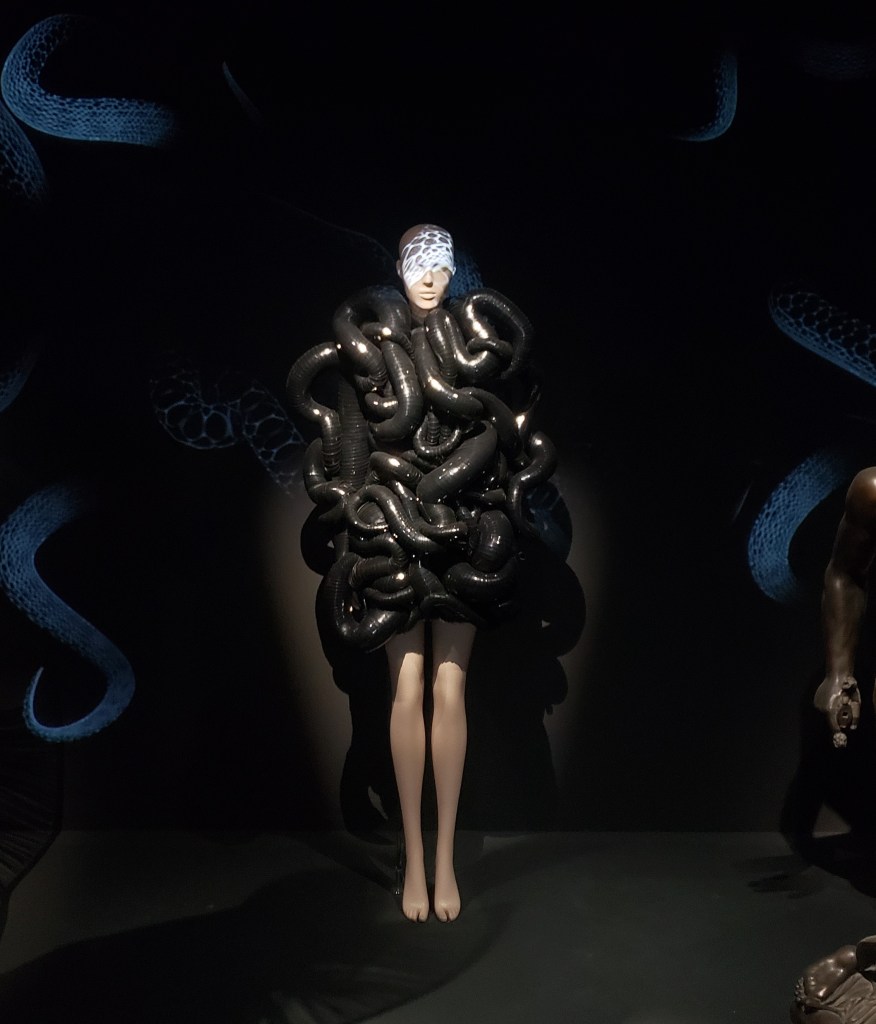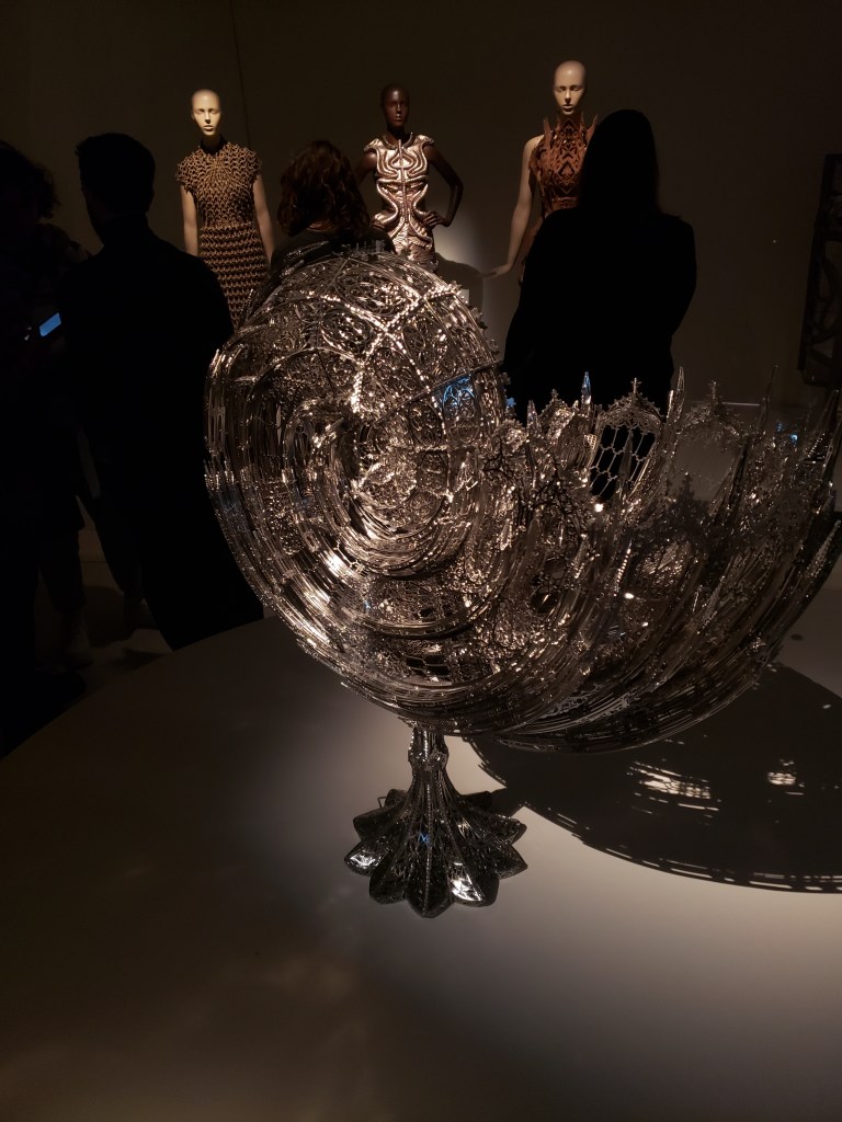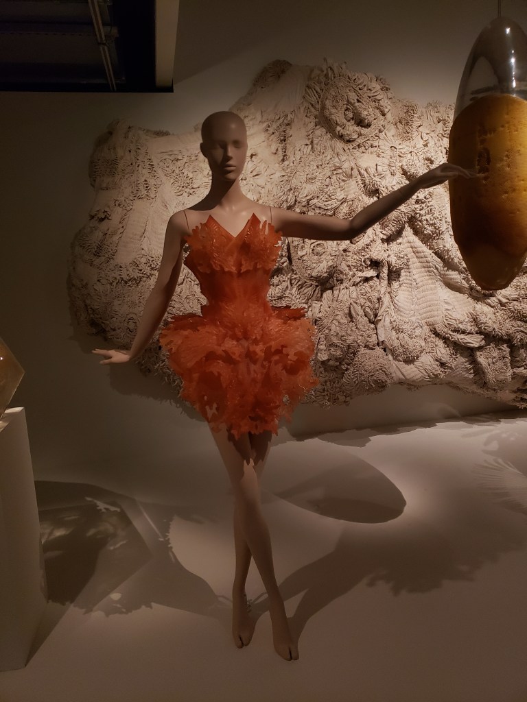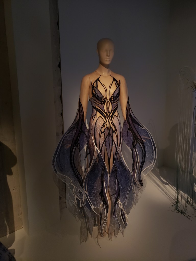 The exhibition was divided into eleven themes, which are presented below. However, this is not intended to be exhaustive and only contains the highlights of each theme. The focus here is on Iris van Herpen’s fashion, but the complementary art was also often a highlight, and is therefore also part of the following highlights. The artist, the collection, and the corresponding year are mentioned below.