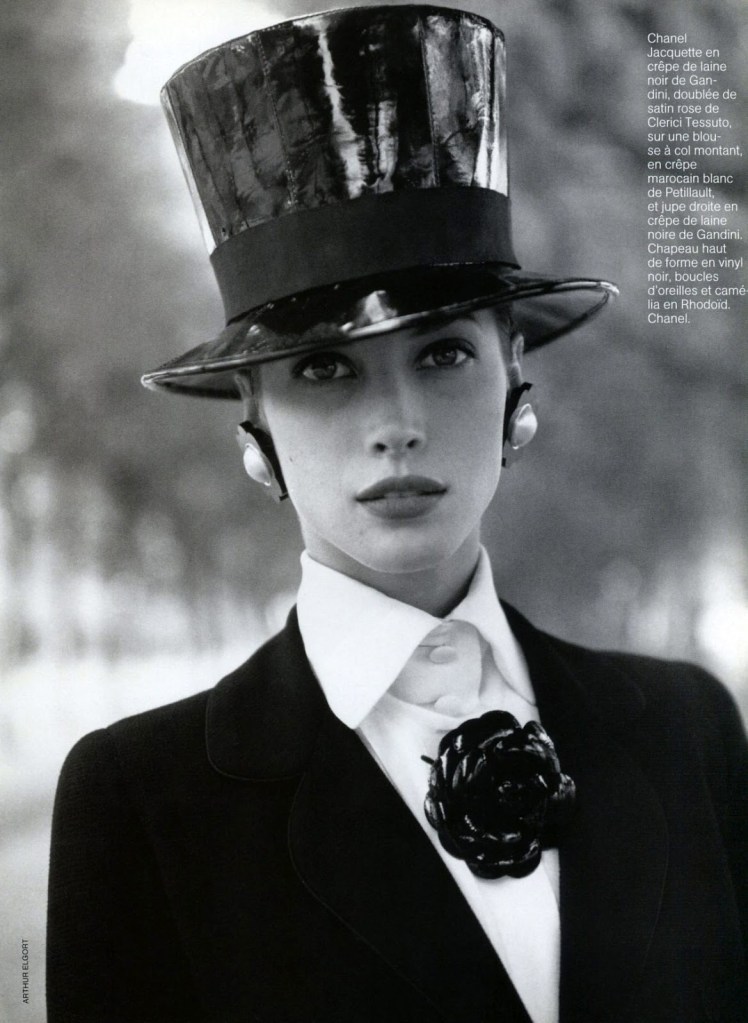 Eine Fotostrecke, die Arthur Elgorts Handschrift trägt und darin Christy Turlington – hier stimmen die Komponenten für ein Karriere Highlight. Stechende Blicke, ein breites Grinsen, einzigartige Silhouetten überzeugten schon 1991 in der Französischen VOGUE.
