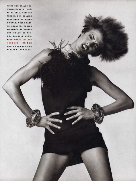 Dieses Editorial der Kanadierin aus dem Jahr 1990 sprüht gerade zu vor Energie, welche der Fotograf Steven Meisel perfekt eingefangen hat. Die Fotostrecke ist in der Italienischen VOGUE erschienen.
