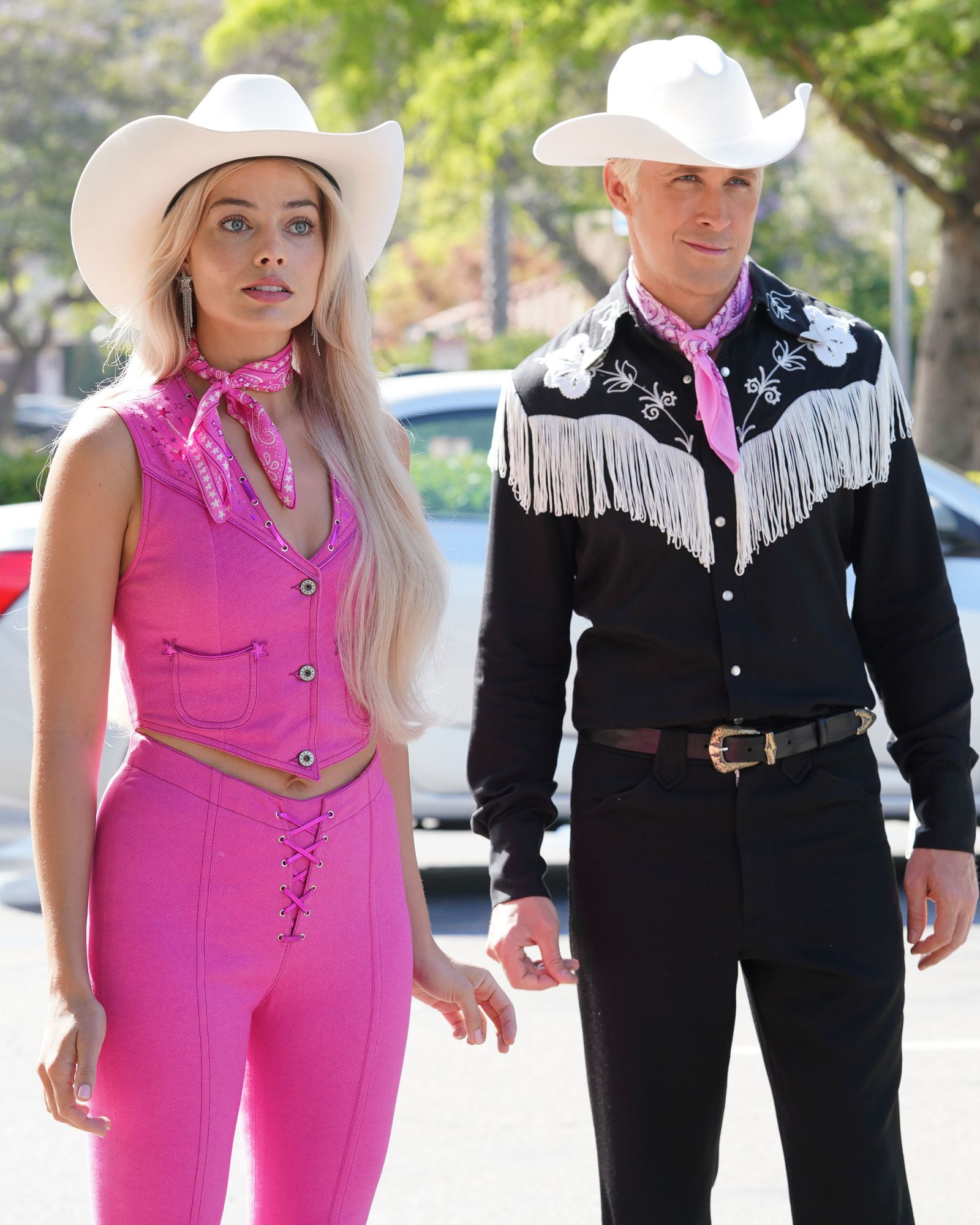Zuerst möchte ich den hohen Unterhaltungswert des Filmes betonen. Das Bühnenbild, die Dialoge und die Oufits sorgen für einige Schmunzler – teilweise sogar Lacher. Besonders die beiden Hauptdarsteller Margot Robbie und Ryan Gosling verkörpern die Hauptrollen von Barbie und Ken auf fantastisch simple und doch ergreifende Art. Dazu kommen die grandiosen Outfits, die oftmals die ikonischen Barbieoutfits aufgegriffen haben. Seht selbst:
