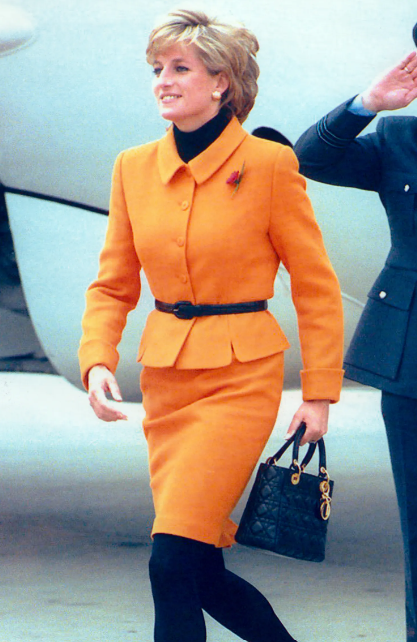 - Ebenfalls ikonisch sind die Looks der Prinzessin mit der Lady DIOR Bag, die sogar nach ihr benannt wurde. Bei einer Eröffnungsfeier im Jahr 1995 im Grand Palais in Paris wurde Lady Di von der damaligen First Lady Frankreichs eine noch nicht veröffentlichte DIOR Tasche geschenkt. Richtig bekannt wurde die Tasche dann kurz danach im selben Jahr, als Diana die Lady Dior bei einem Besuch in Argentinien beim Verlassen ihres Flugzeuges in Buenos Aires trug.