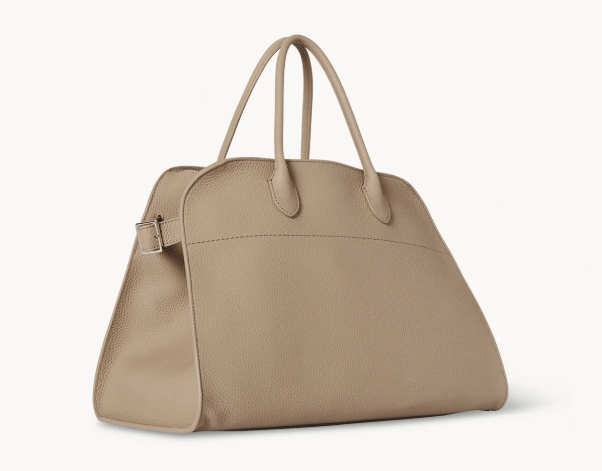 Im Luxusbereich haben markante Formen aktuell stark an Bedeutung gewonnen, da das Interesse an stark logo-lastigen Designs nachgelassen hat. So bleibt die Baguette-Form, mit eleganten Interpretationen von Alaïa und Bottega Veneta, dominant. Formen, die herausstechen und auch mutiges, modebewusstes Design mitbringen, scheinen Teile des Erfolgsrezeptes zu sein. Die Margaux Tasche von The Row scheint dies hier auch widerzuspiegeln.