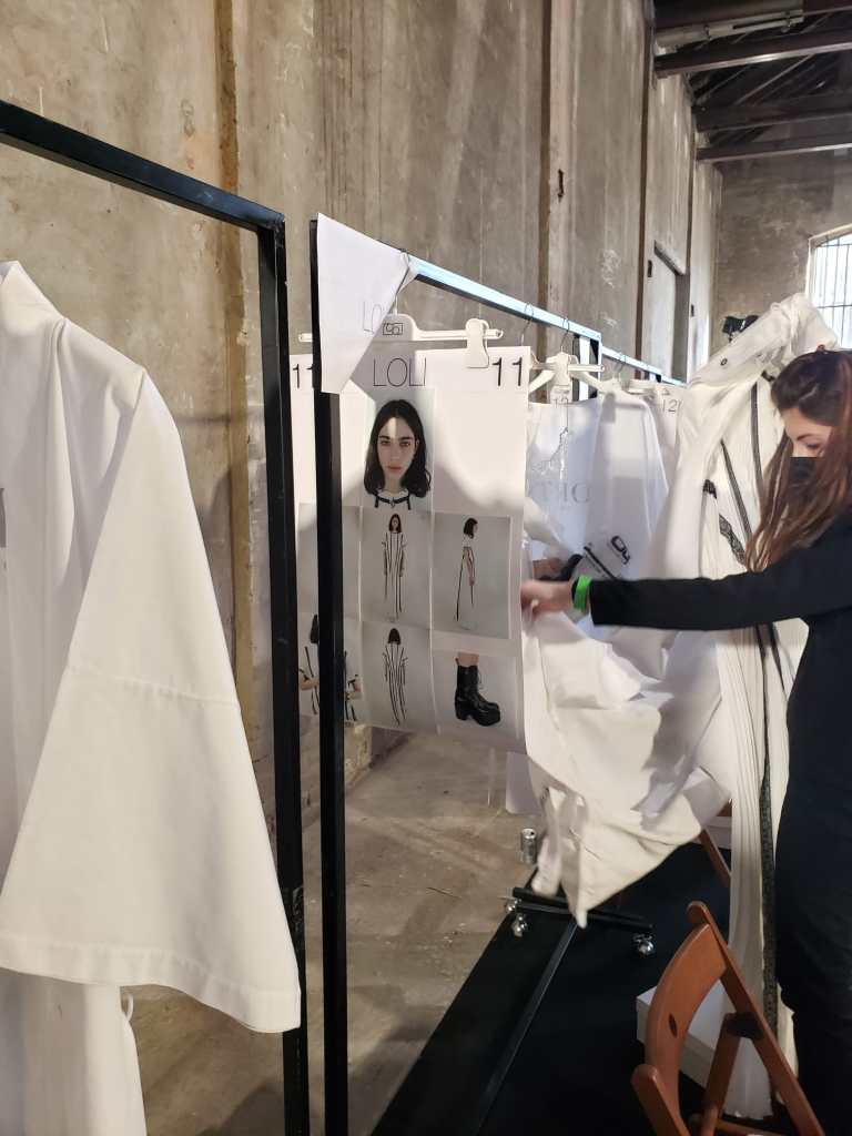 Durch Kontakte zu italienischen Lieferanten, die ich während des dualen Studiums knüpfen konnte, war es mir möglich den Namen der zuständigen Agenturen herauszufinden. Diese Agenturen vermitteln Dresser zu den jeweiligen Shows. Dresser helfen den Models sich vor der Show anzuziehen und natürlich auch den schnellen Wechsel von Outfits innerhalb der Show durchzuführen.