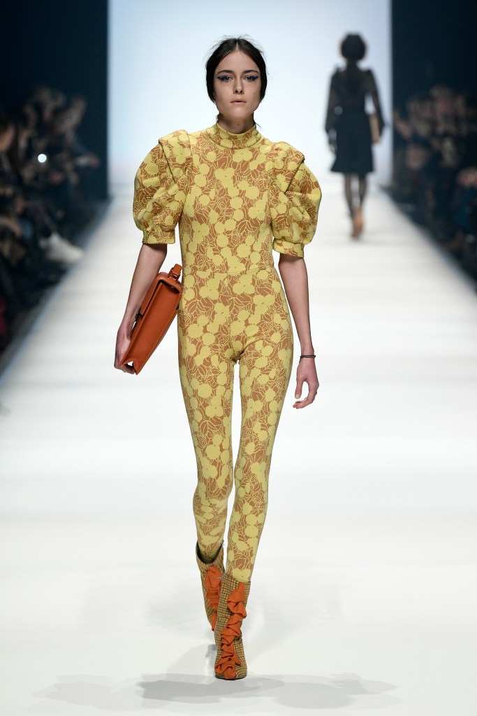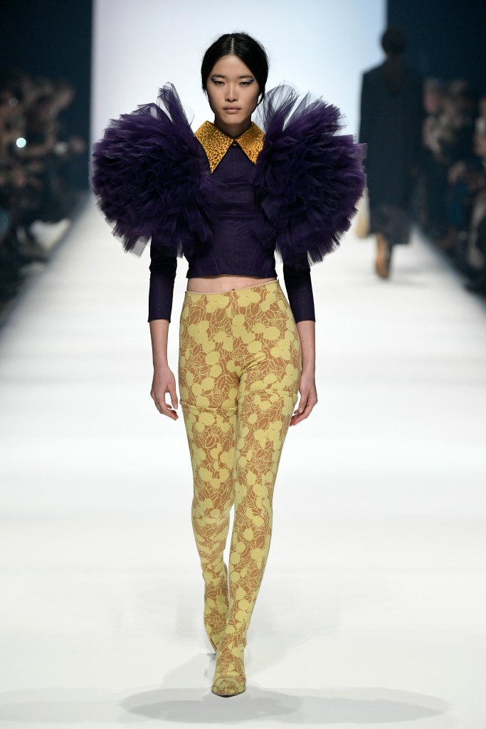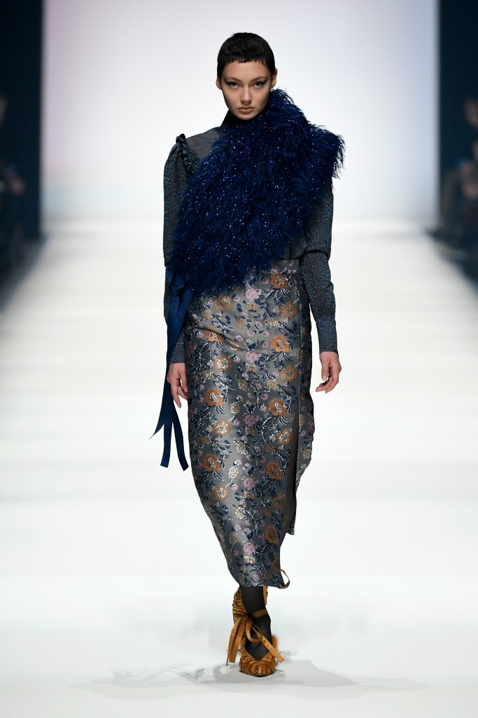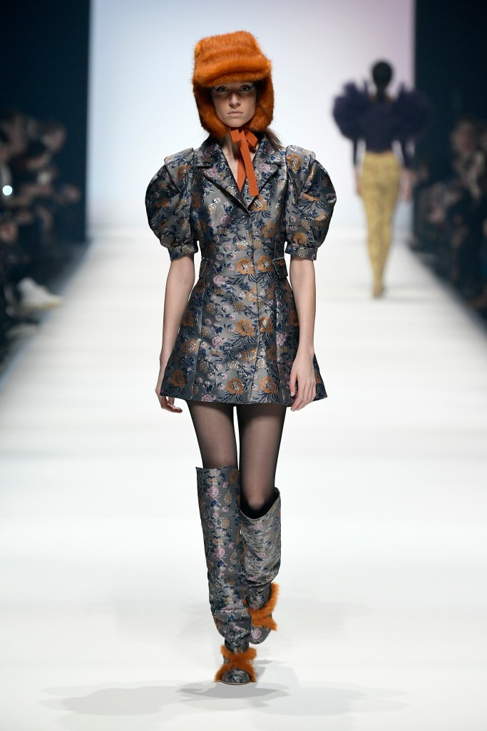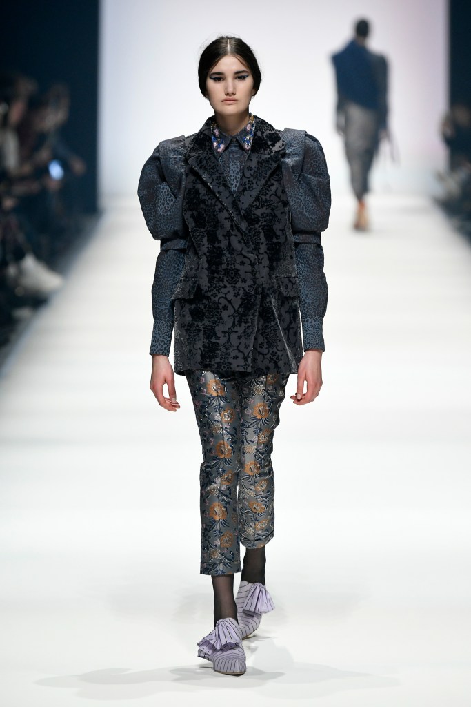 BERLIN, GERMANY – JANUARY 14: A model walks the runway at the Danny Reinke show during Berlin Fashion Week Autumn/Winter 2020 at Kraftwerk Mitte on January 14, 2020 in Berlin, Germany. (Photo by Stefan Knauer/Getty Images for MBFW)