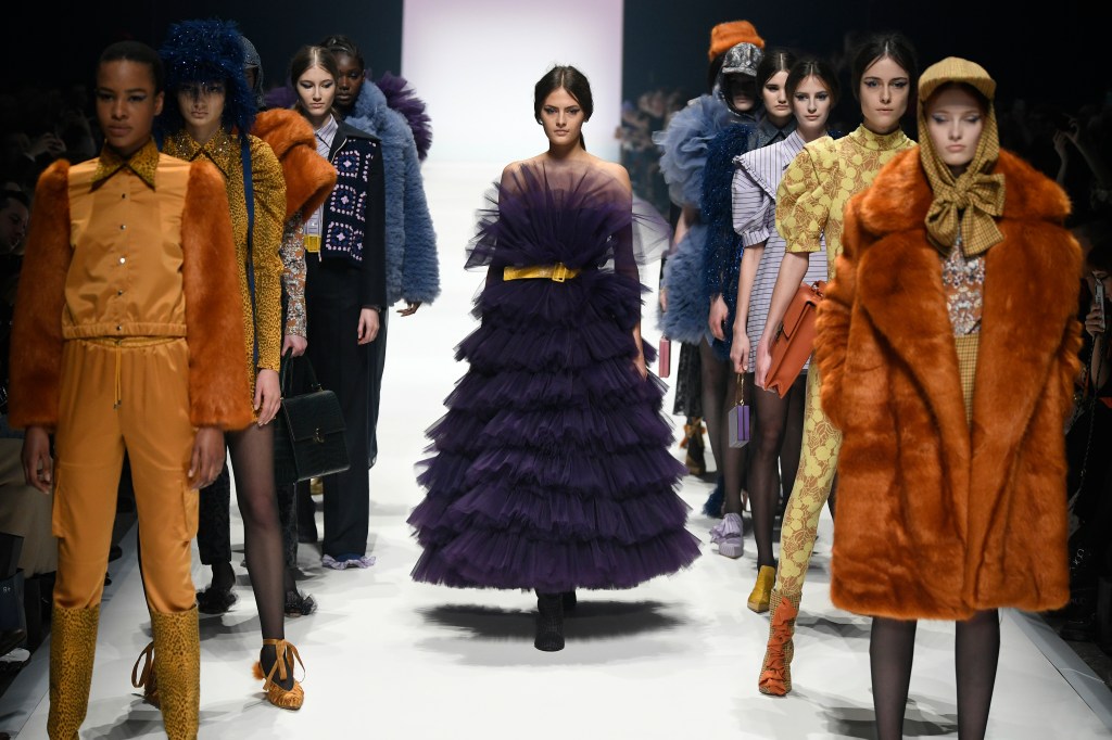 BERLIN, GERMANY – JANUARY 14: Models walk the runway at the Danny Reinke show during Berlin Fashion Week Autumn/Winter 2020 at Kraftwerk Mitte on January 14, 2020 in Berlin, Germany. (Photo by Stefan Knauer/Getty Images for MBFW)
